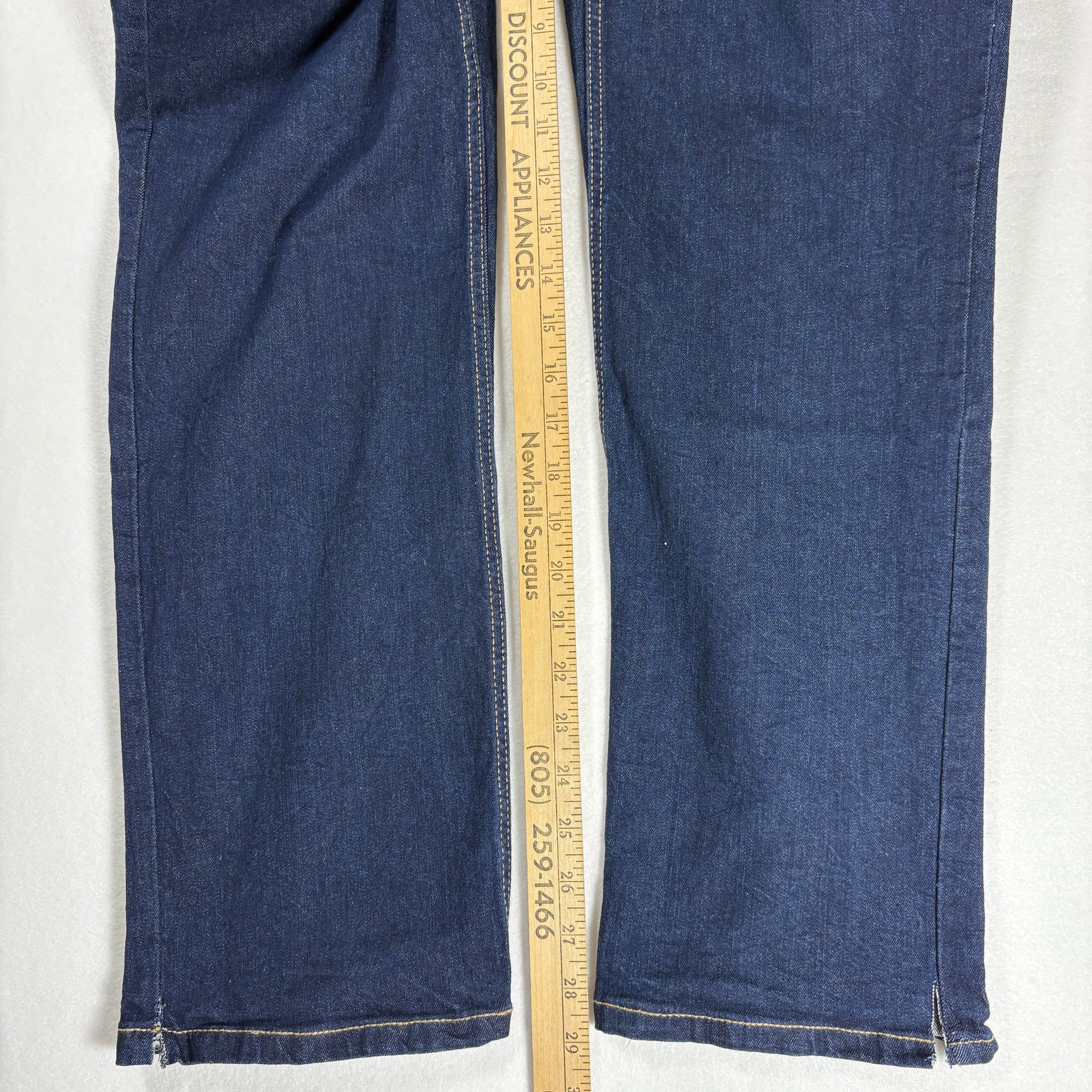 ✓ Dark wash denim with contrast stitching