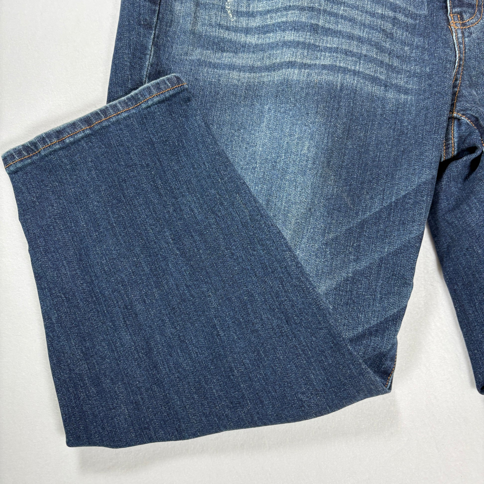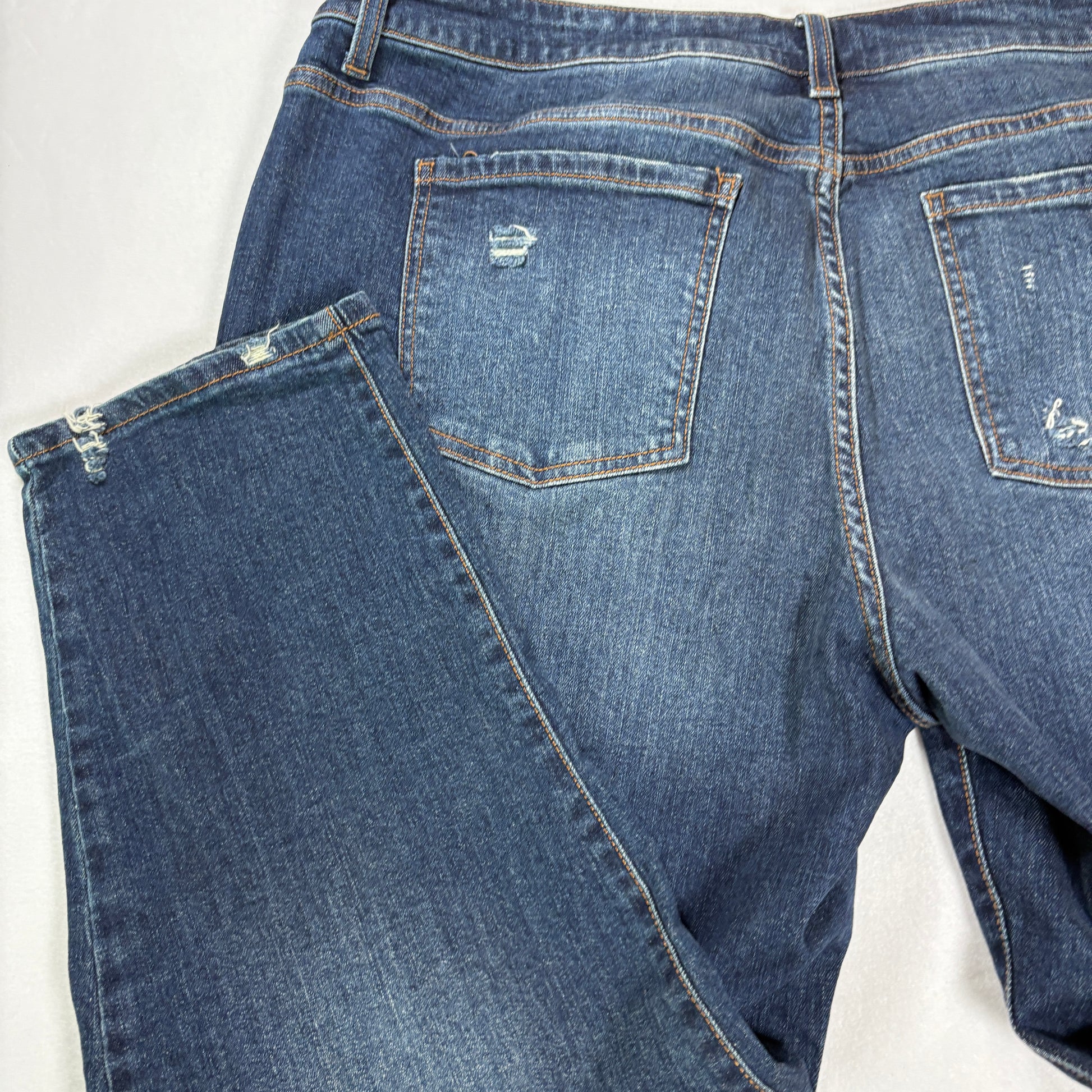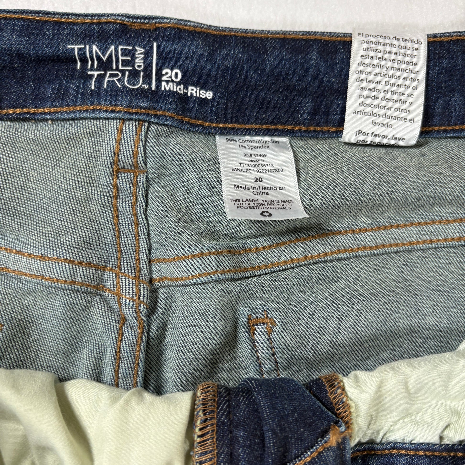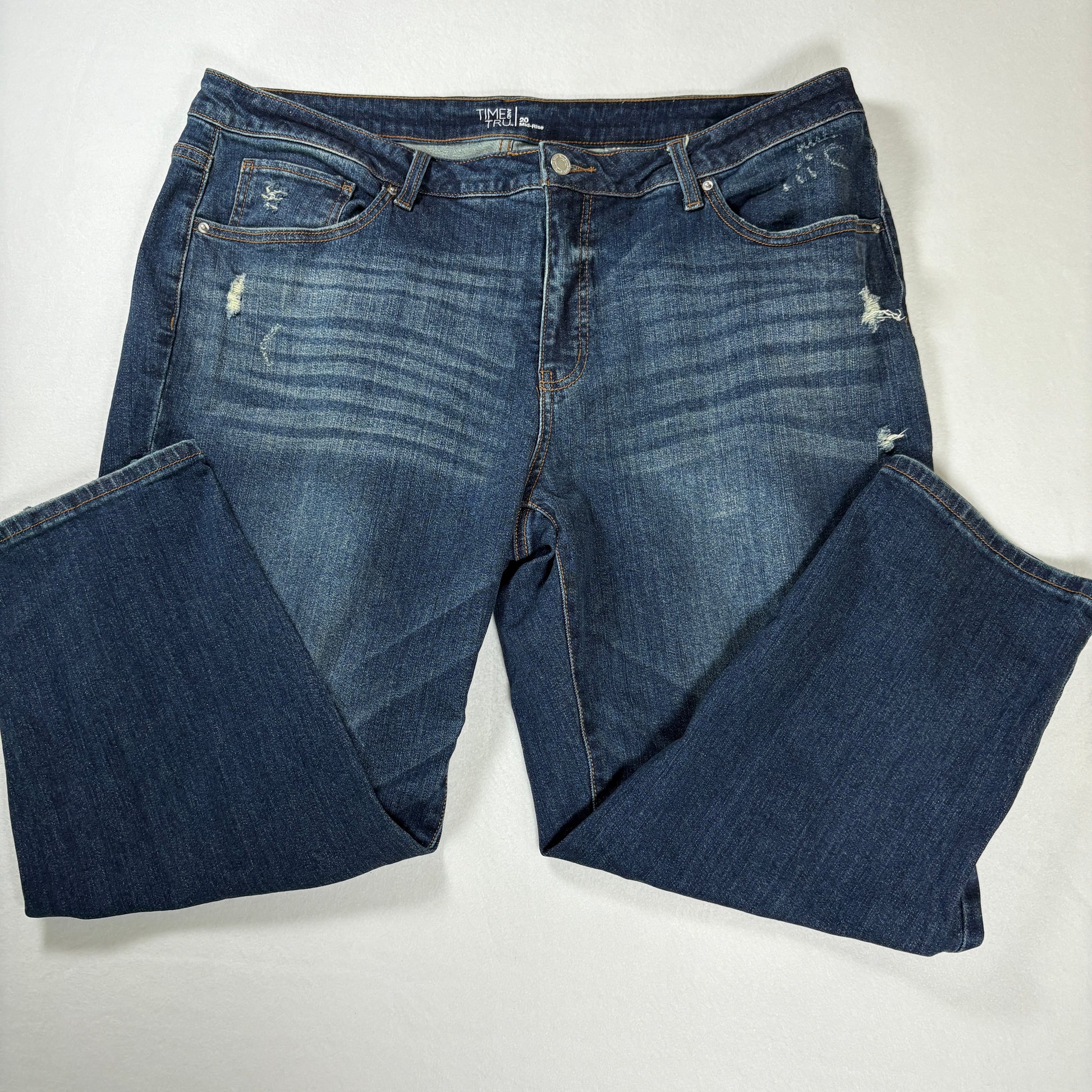 Keep it casual with these Time and Tru women’s jeans featuring a flattering mid rise fit and straight leg cut. The distressed whiskering and ripped accents give them a modern, worn-in vibe while the medium wash makes them versatile for everyday wear. Classic 5-pocket style with button and zip fly closure. Tagged women’s size 20.