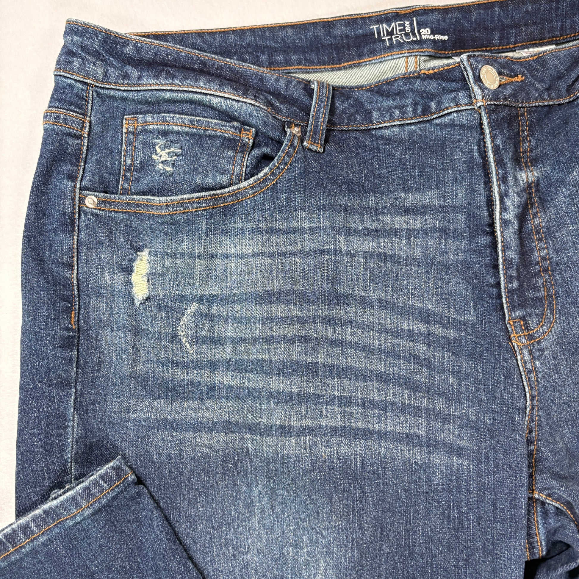 Time and Tru Jeans Women’s 20 Blue Mid Rise Distressed Straight Leg Denim