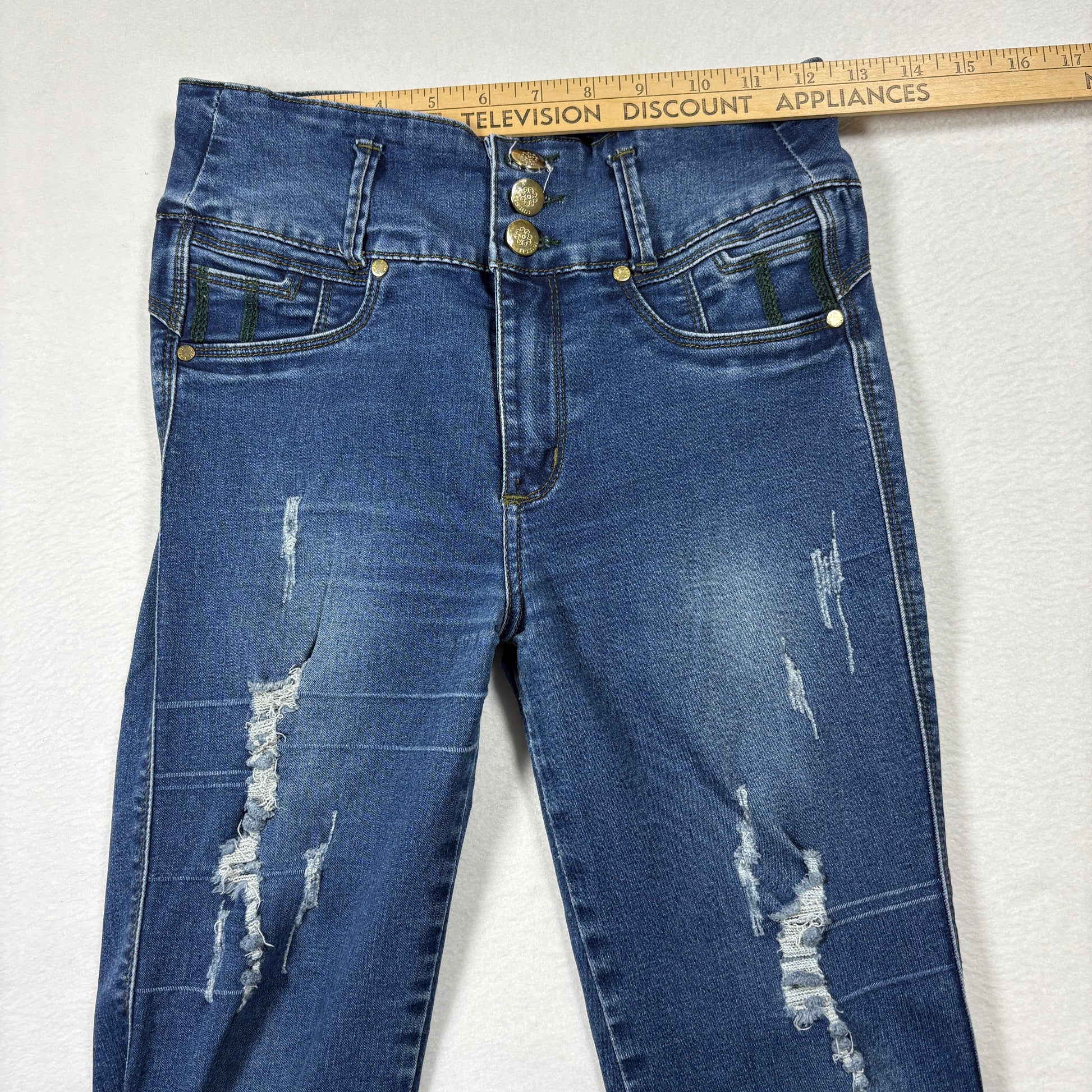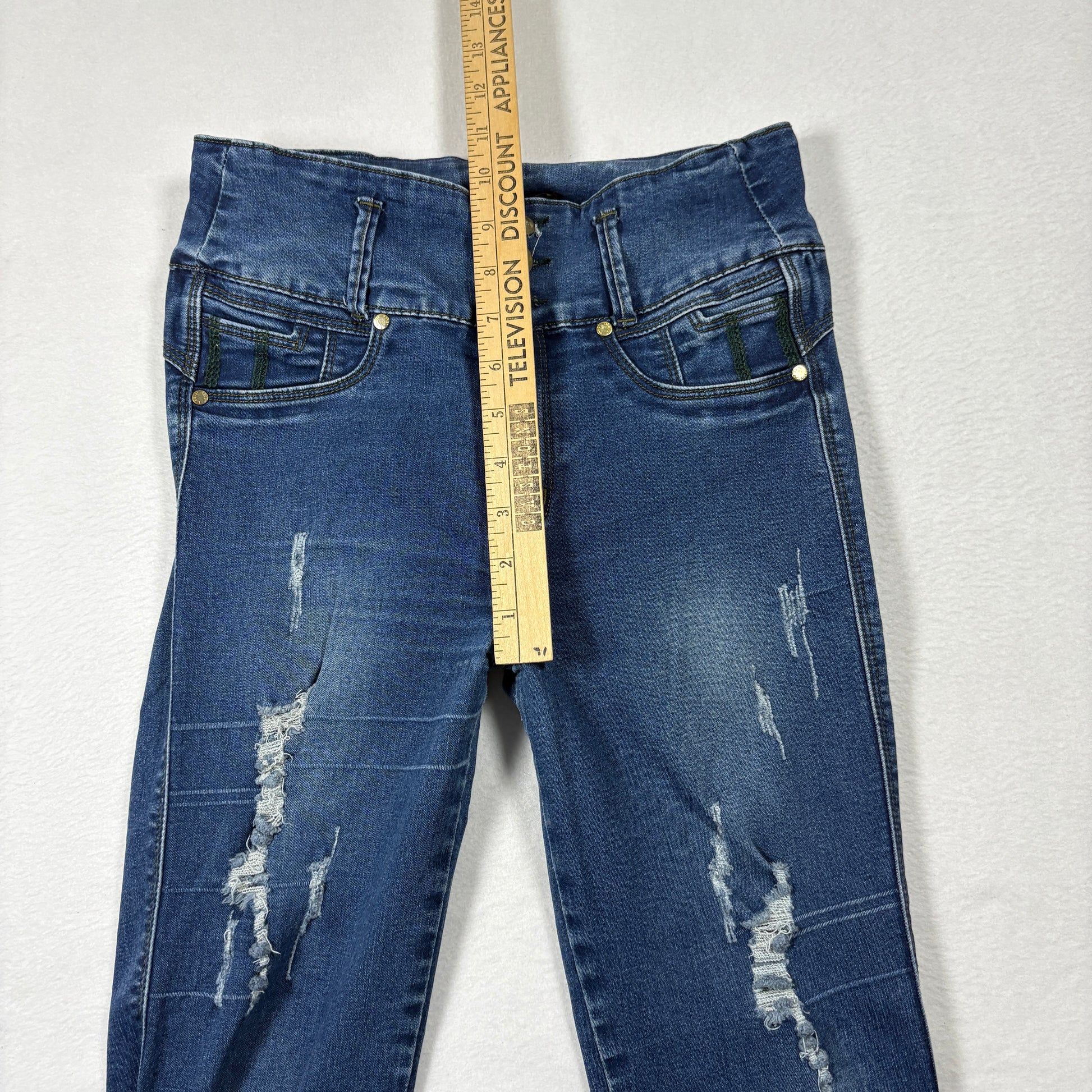 Tissini Womens Jeans Dark Wash Distressed Skinny High Rise Push Up Y2K Size 14