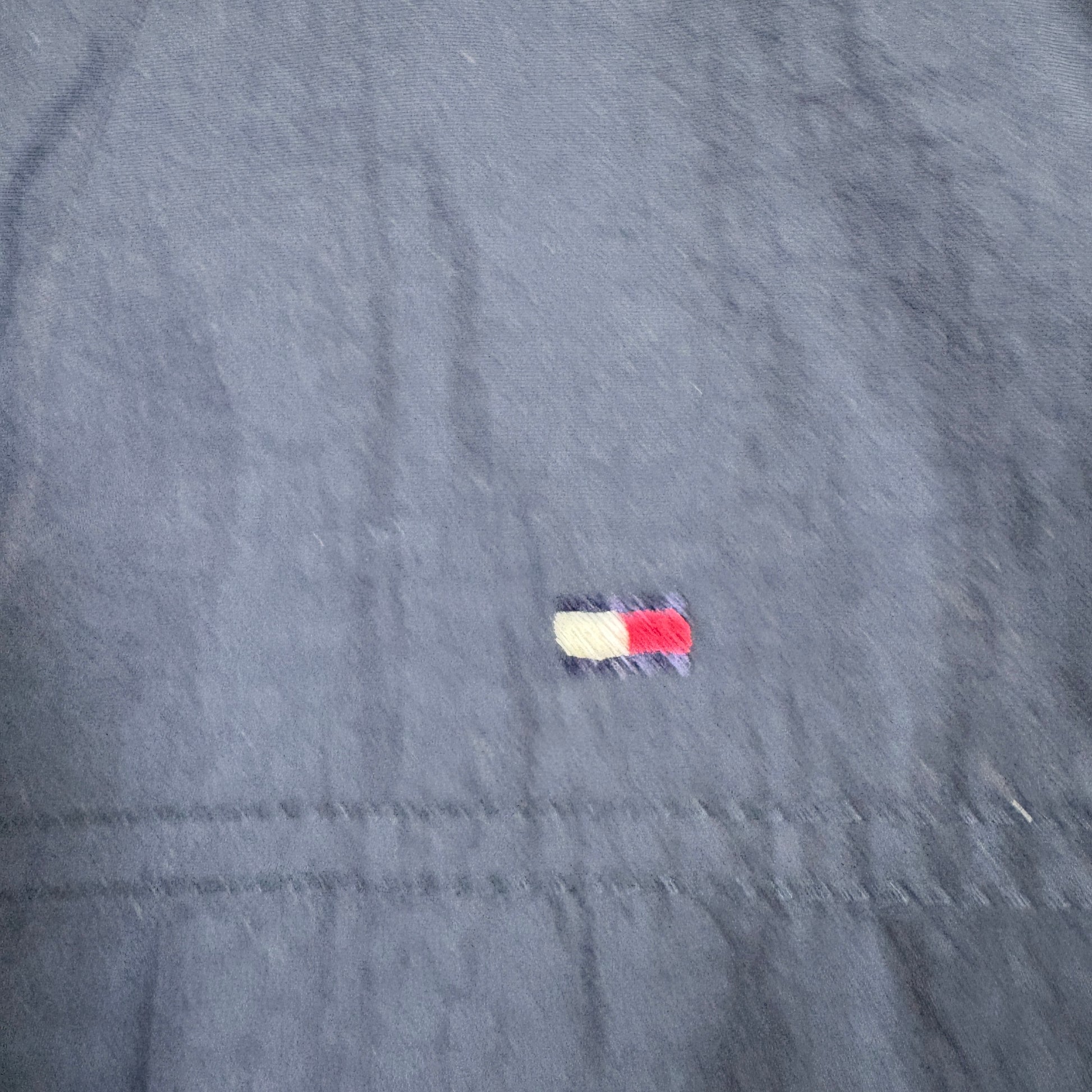Classic Tommy Hilfiger navy full-zip windbreaker with hidden hood. Iconic flag details and retro Y2K vibe make it a versatile streetwear layering piece, perfect for casual fits or 90s-inspired outfits. XL size offers a relaxed fit that’s always in demand.