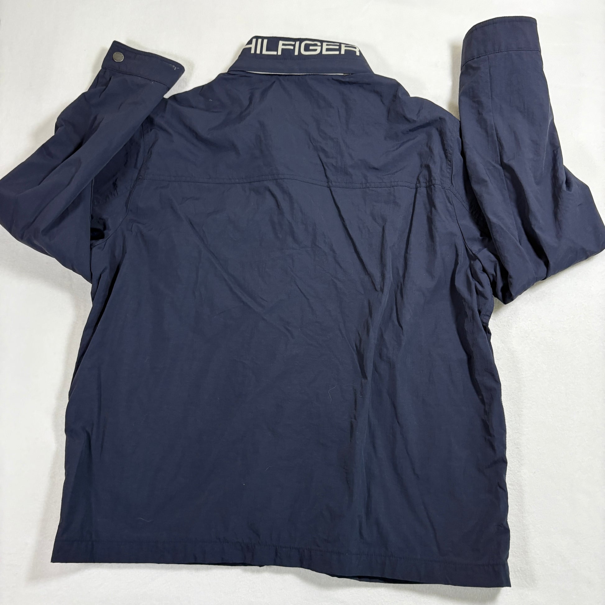 Tommy Hilfiger mens jacket XL Navy Full Zip Hooded Windbreaker Retro Y2K Streetwear