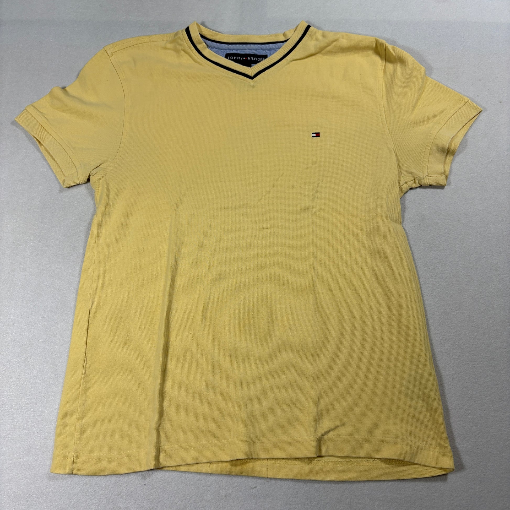 Tommy Hilfiger T Shirt Mens Small Yellow V Neck Minimal Logo Casual Classic Tee