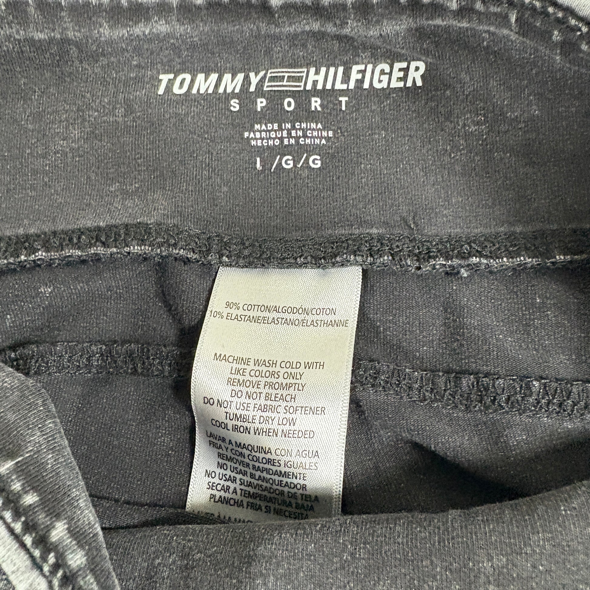 Tommy Hilfiger Womens Black Acid Wash Leggings Large Y2K 90s Grunge Stretch