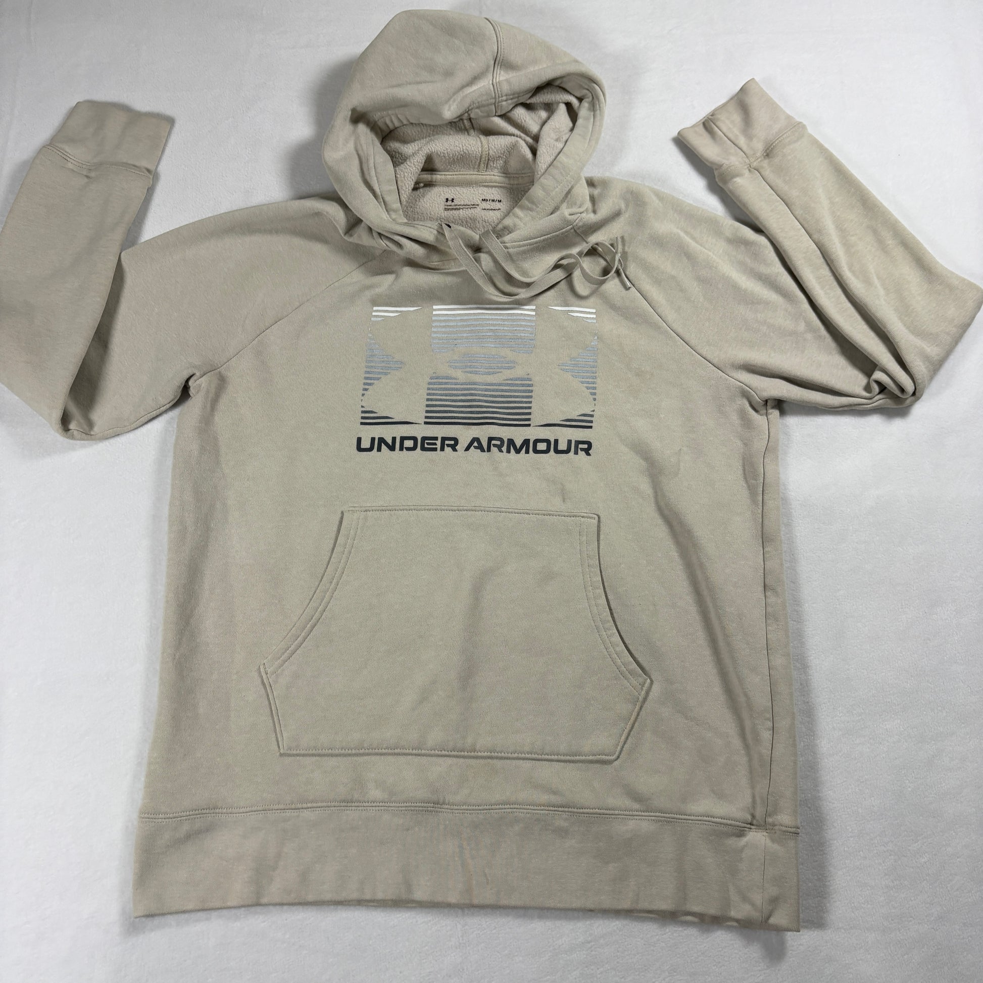 Under Armour Hoodie Mens Medium Beige Streetwear Heatgear Pullover Logo Tan Cozy
