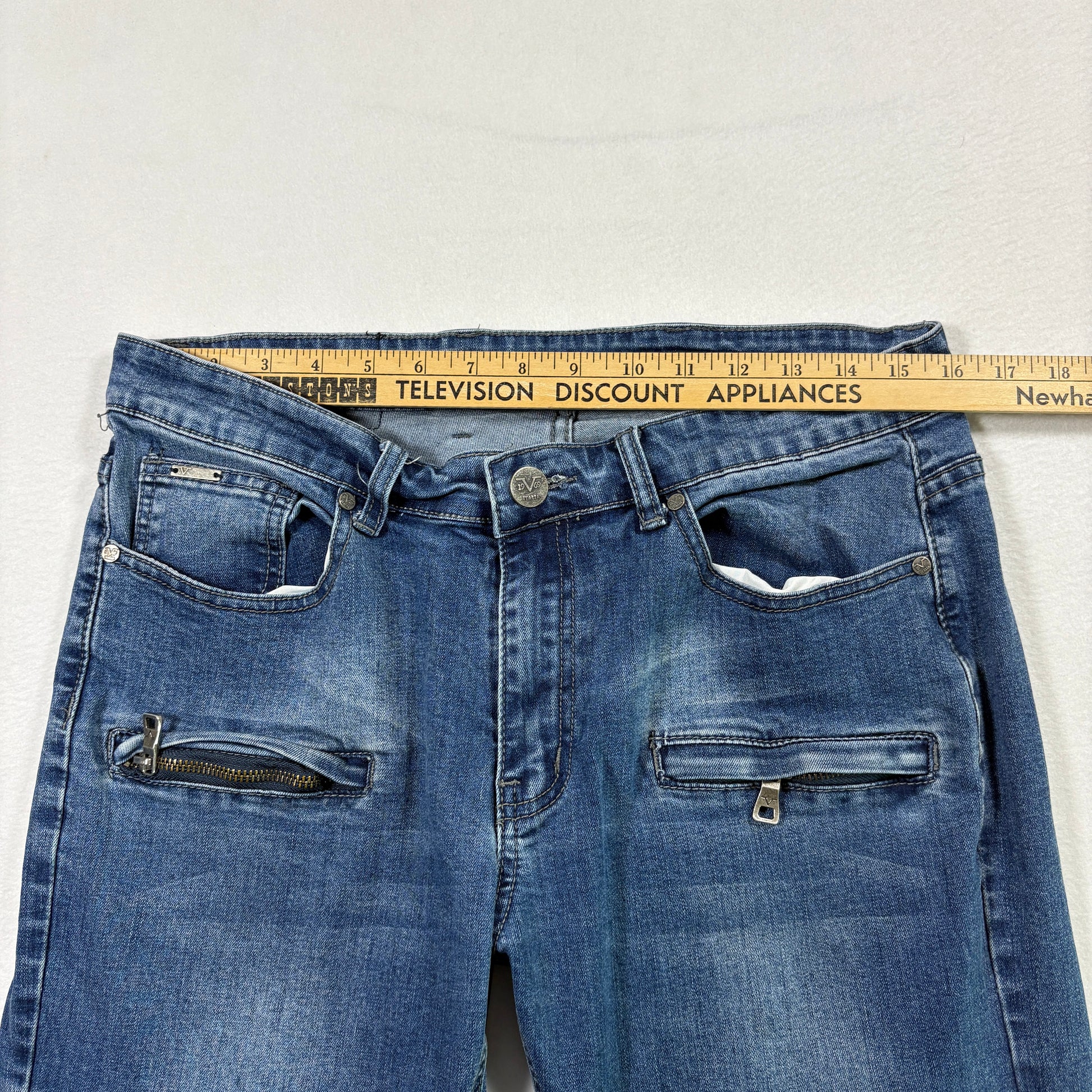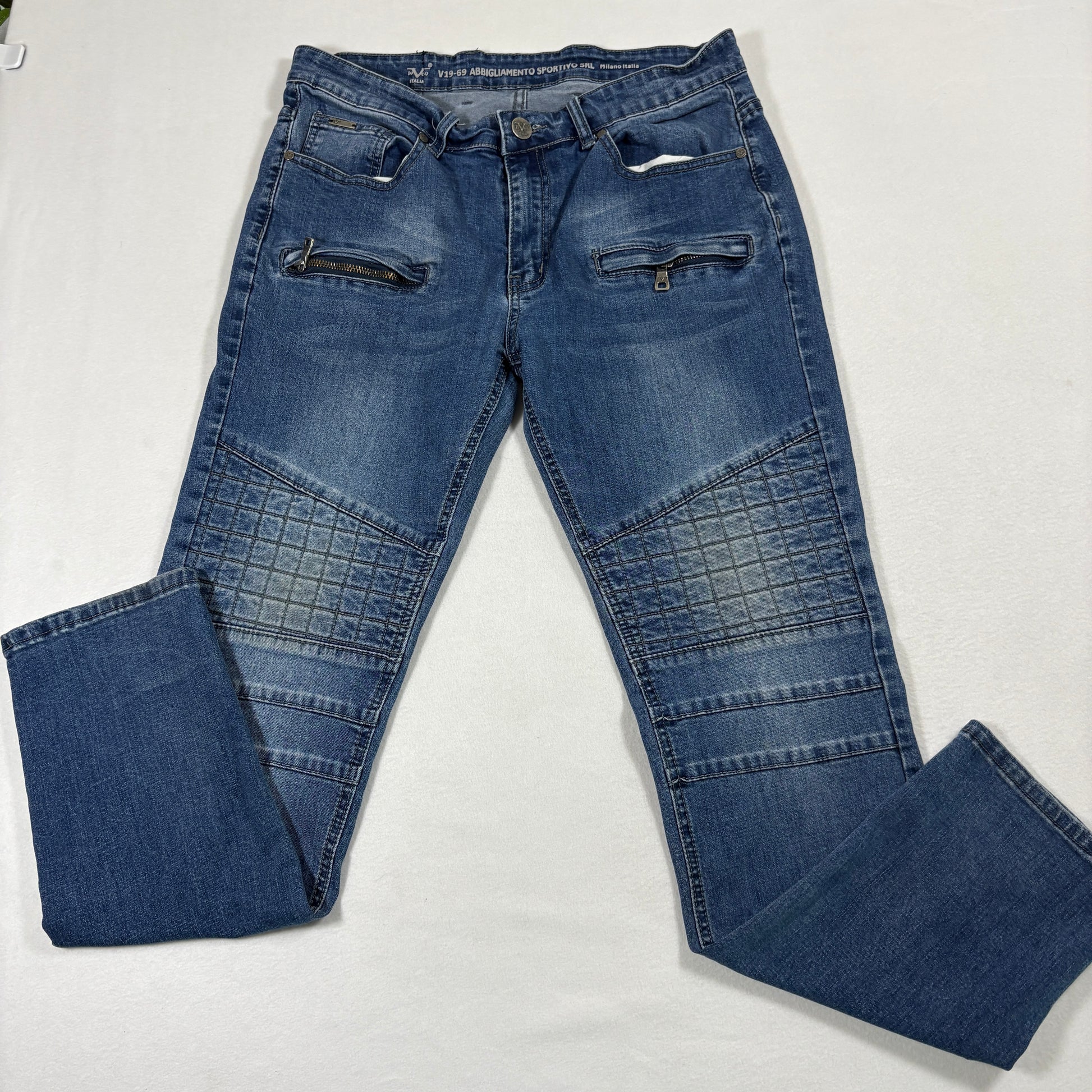 V1969 Italia mens jeans W32 L32 blue biker moto slim fit denim Y2K grunge
