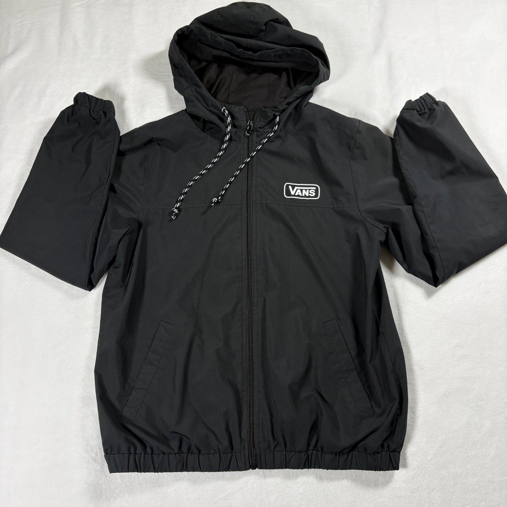 vans jacket, vans windbreaker, mens medium jacket, black skate jacket, streetwear jacket, zip hooded jacket, vans outerwear, skate windbreaker