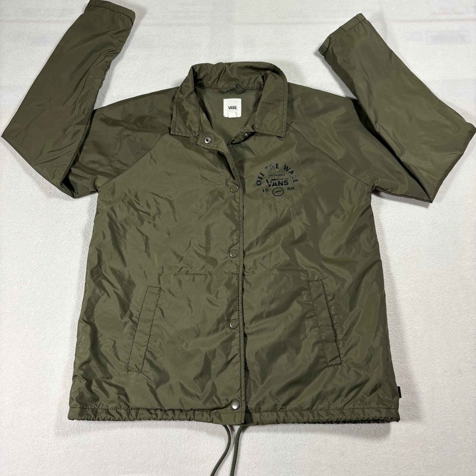 Vans Olive Green Coaches Jacket Mens XS Off The Wall Skate Streetwear Windbreaker