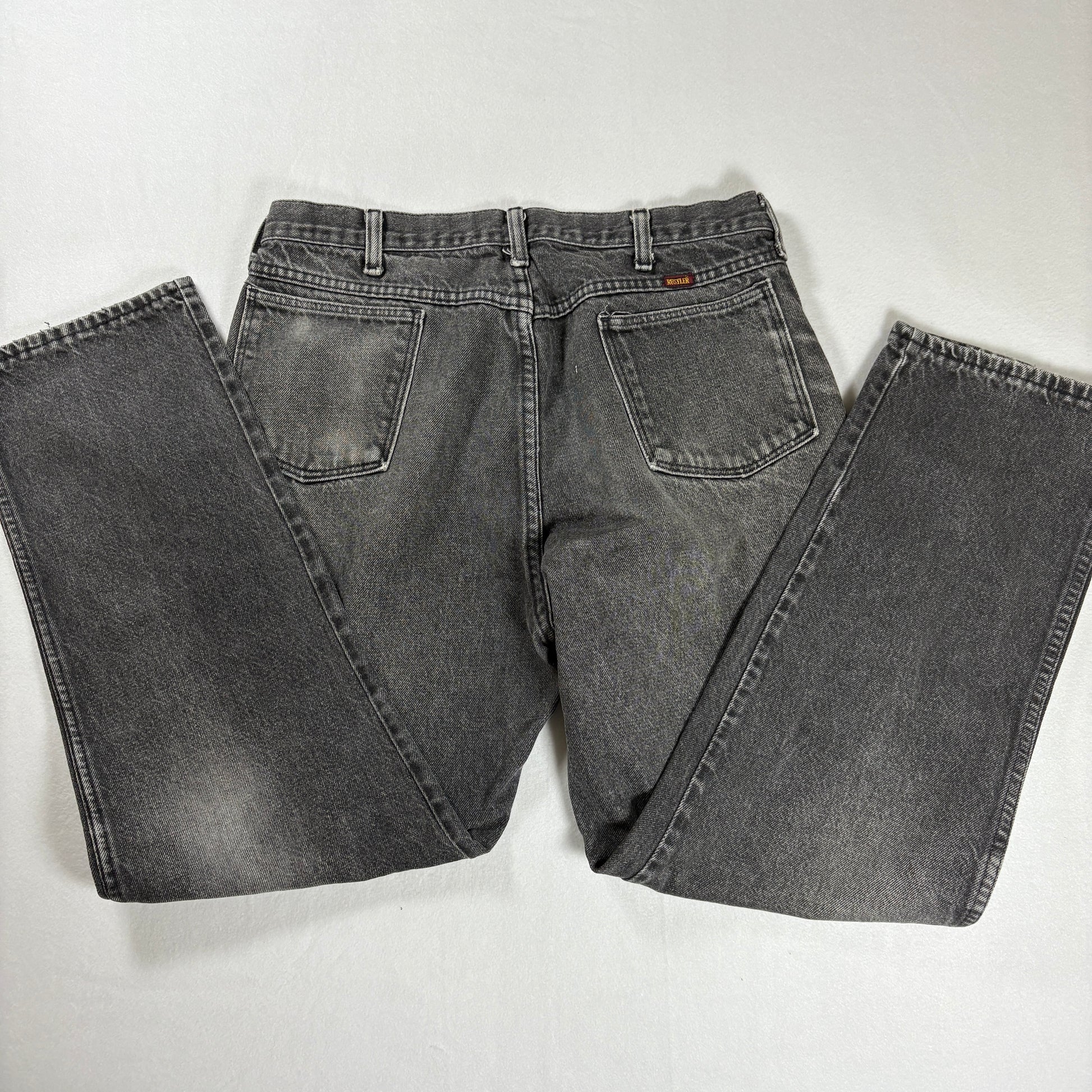 vintage jeans, black gray denim, men’s 38x30 pants, straight leg jeans, retro faded denim, casual everyday style