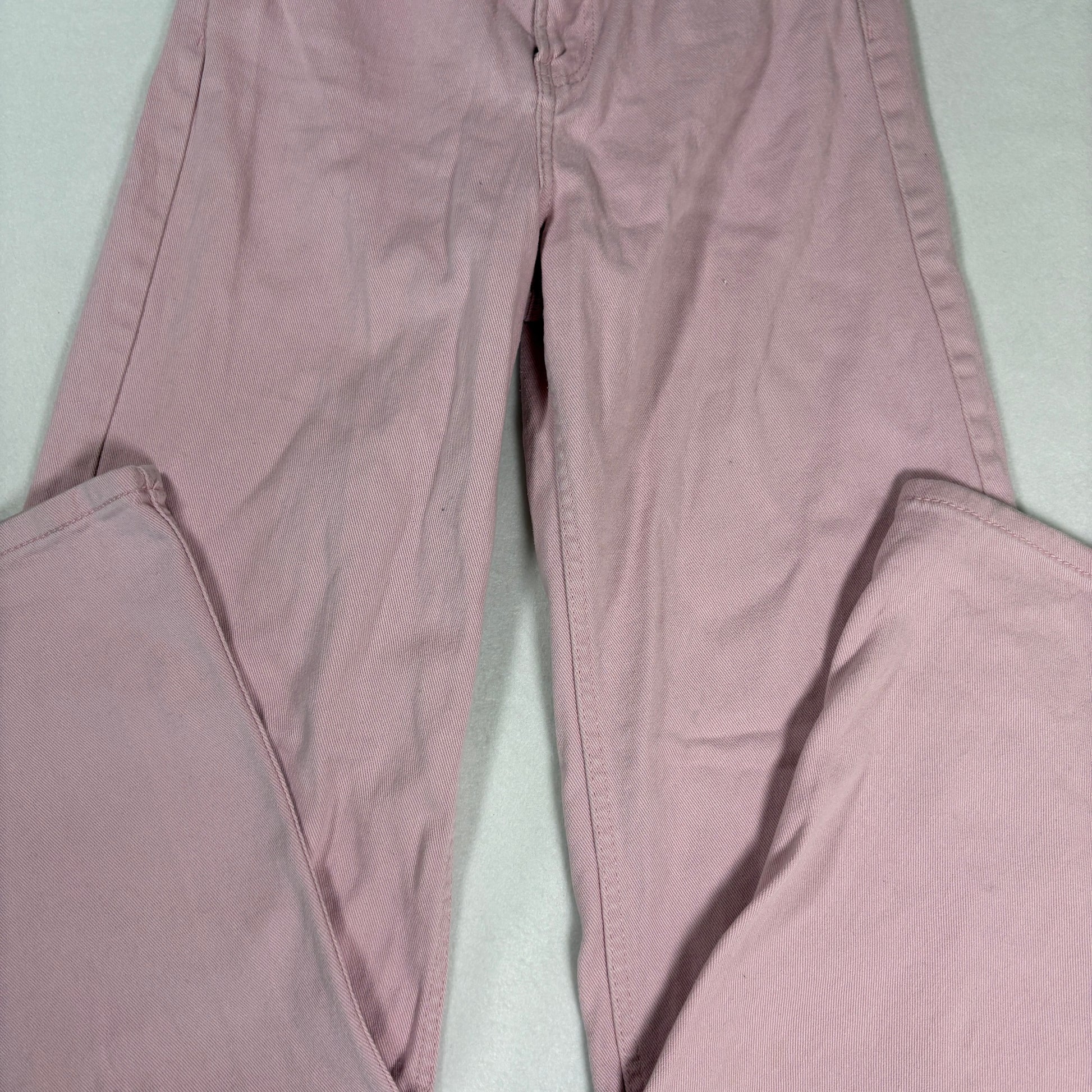 pink jeans, womens baggy denim, Y2K 90s vintage, wide leg pants, grunge streetwear, pastel jeans, size 32x30, casual retro fashion, skate style