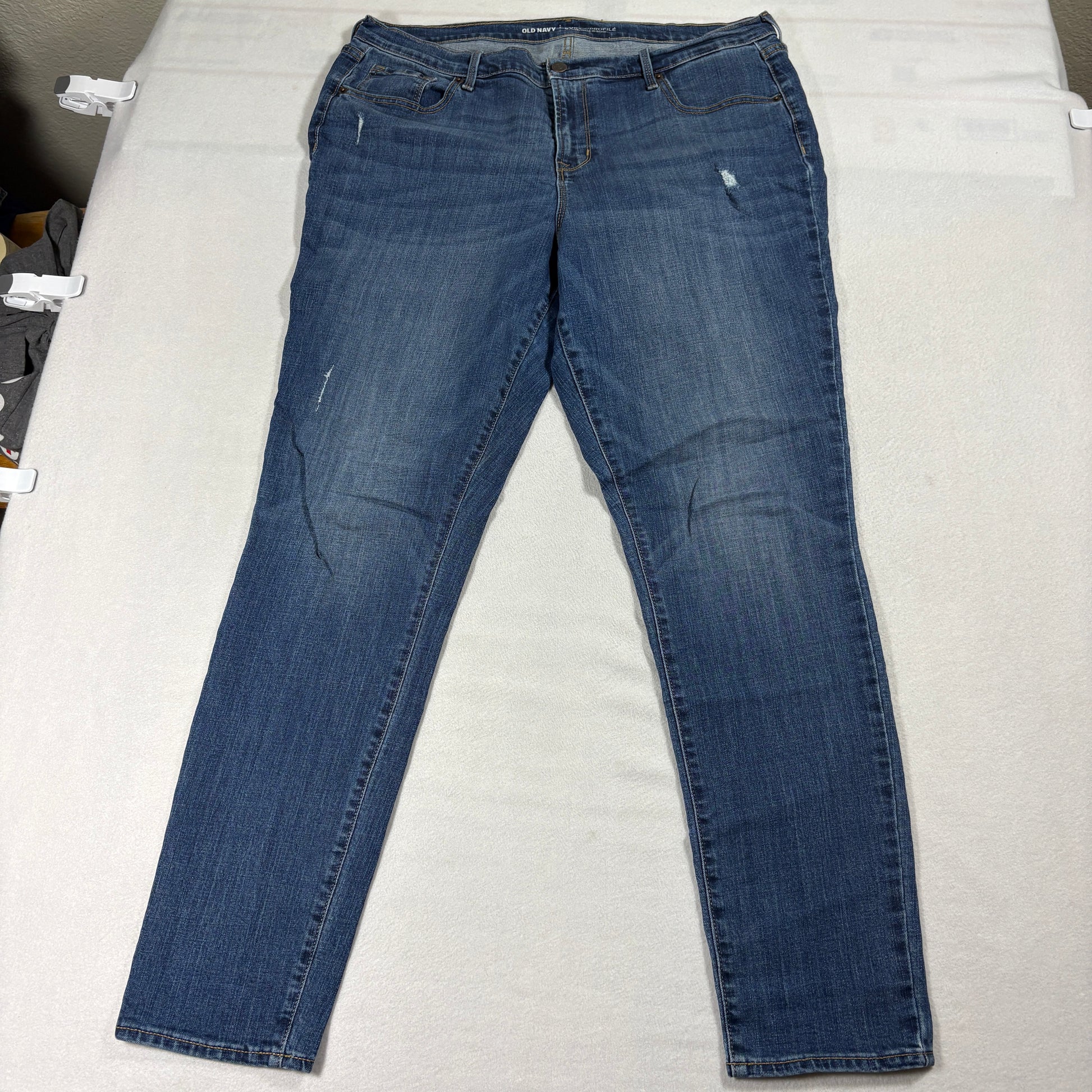 Womens Skinny Jeans 16 Long Mid Rise Blue Distressed Stretch Denim Vintage Style