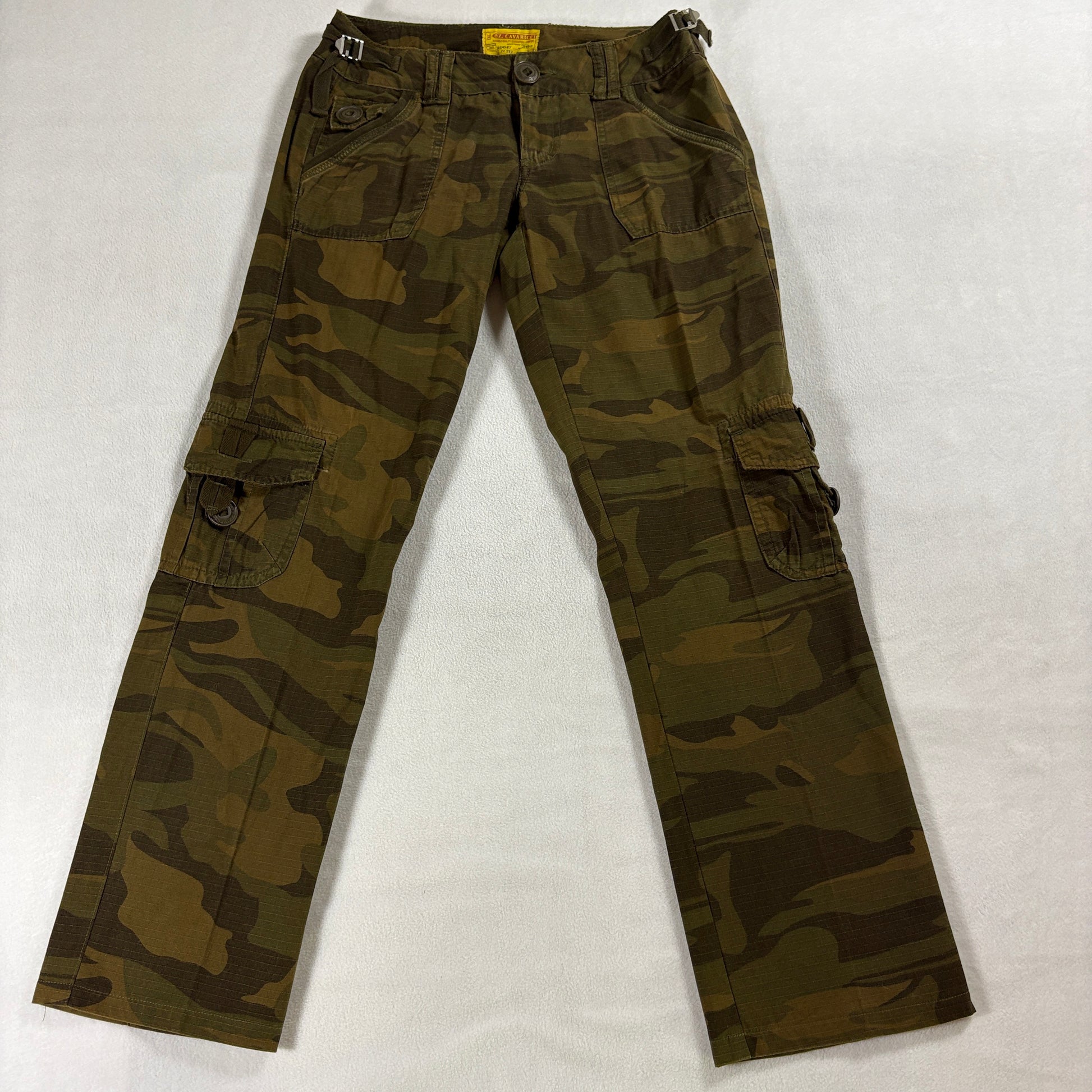 z cavaricci cargo pants womens camo pants y2k utility streetwear rave skater military cargo camouflage low rise wide leg rare vintage size 5 cotton