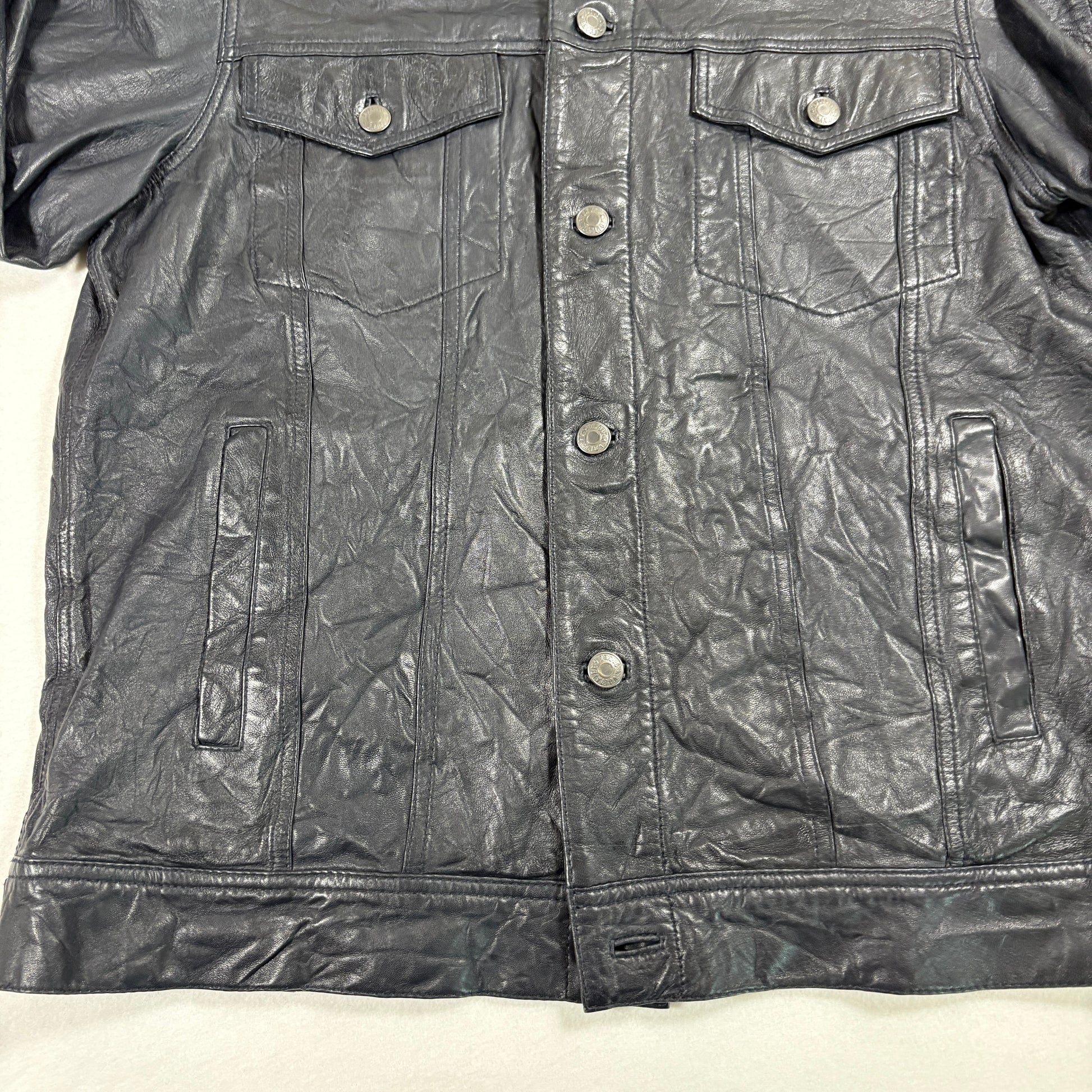 ✓ Mens Large “Base Crinkle Leather Blouson”