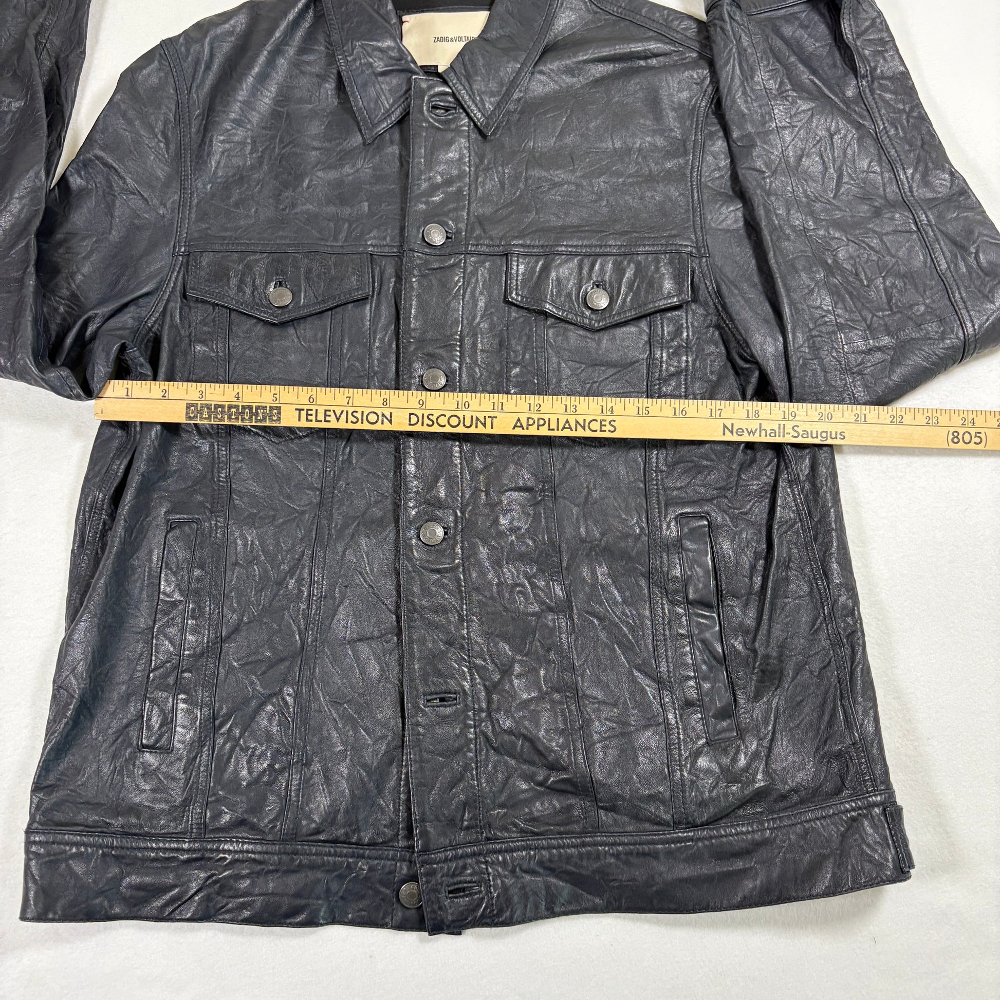 This Zadig & Voltaire leather jacket blends Parisian edge with rugged biker appeal. The unique crinkle finish gives it a lived-in rock star vibe, perfect for layering with streetwear or elevating casual fits. Premium leather and bold detailing make this a statement piece with lasting style.
