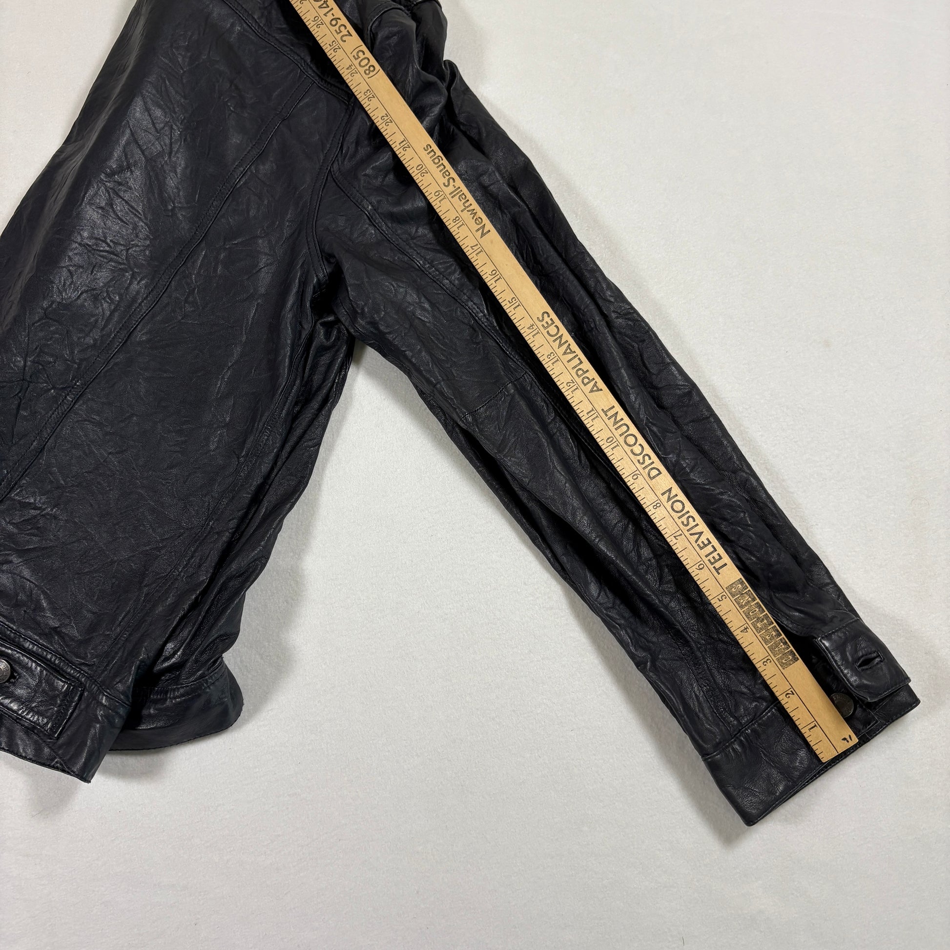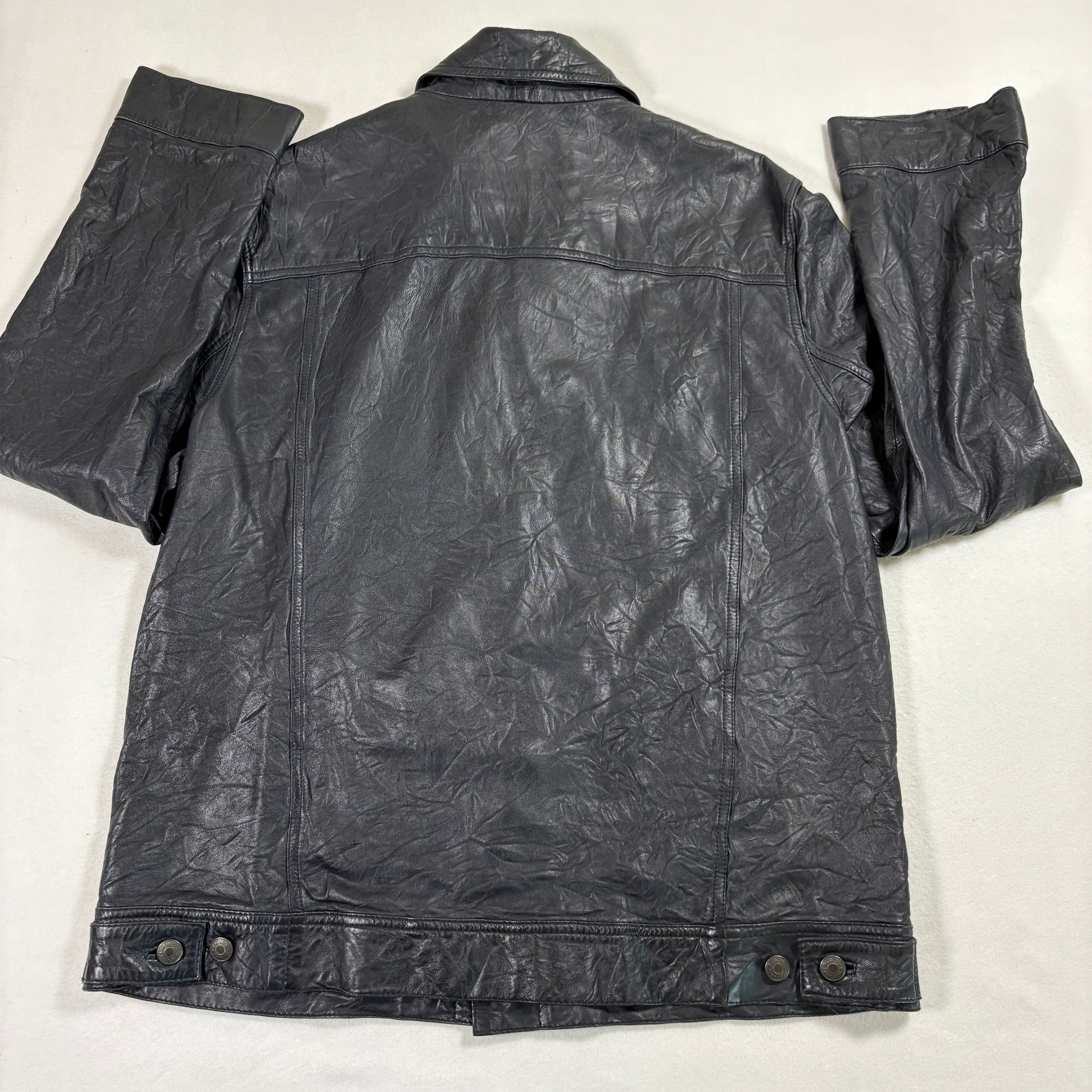✓ Black genuine crinkle leather with snap button closure