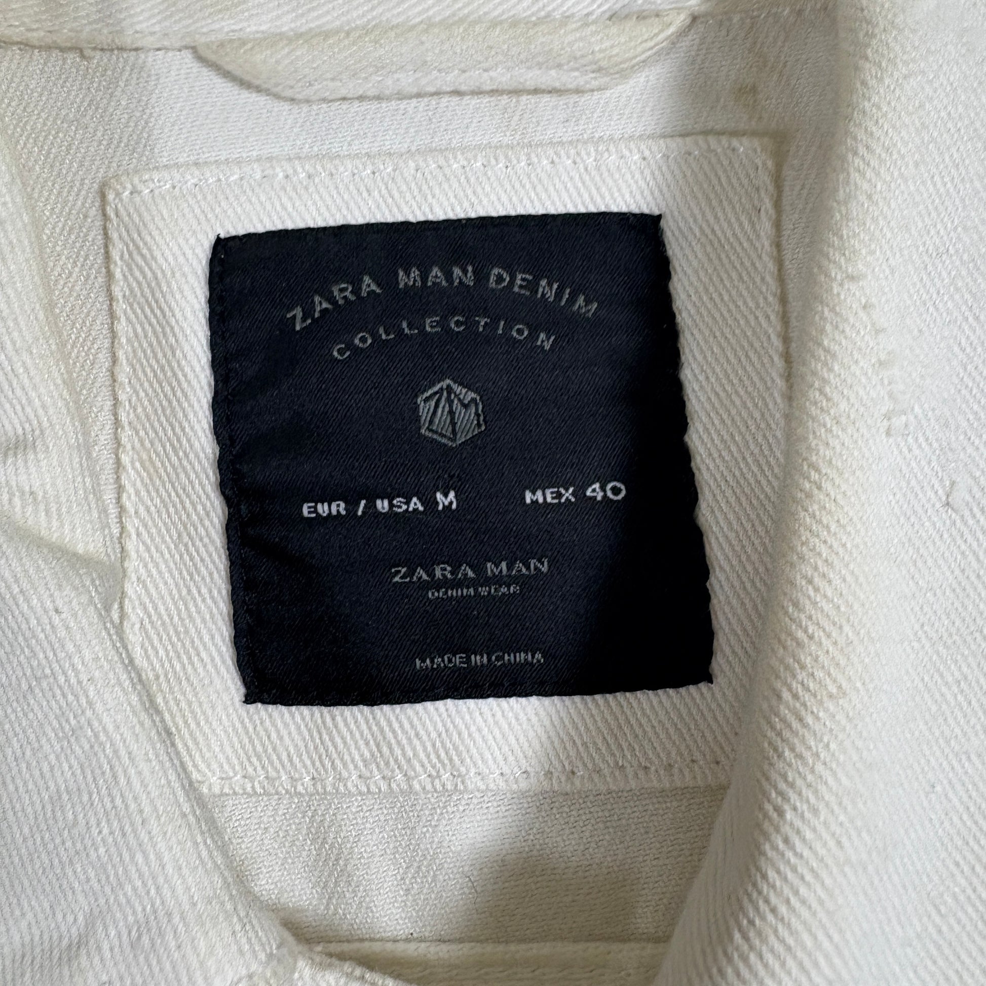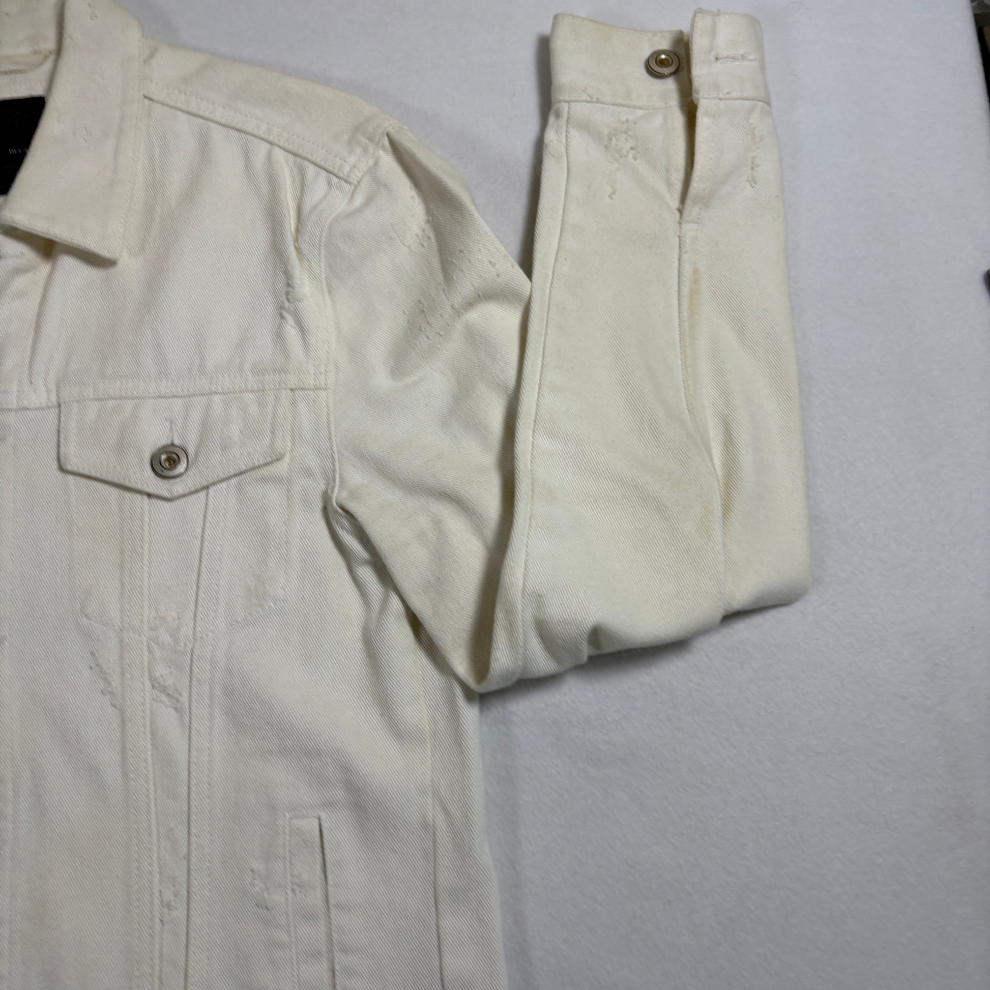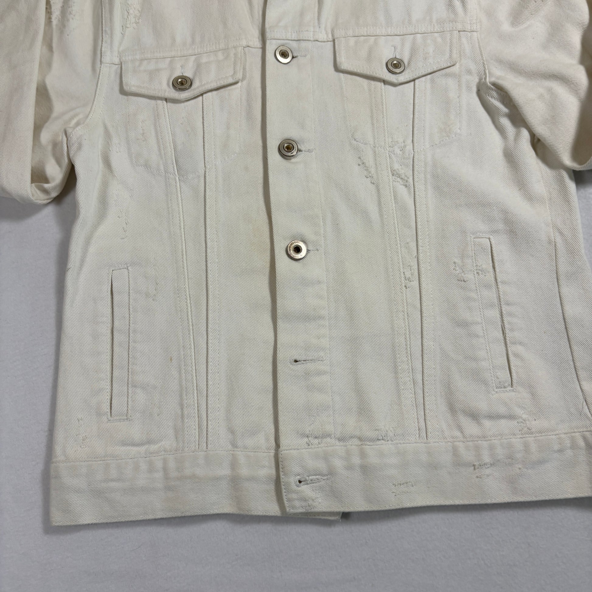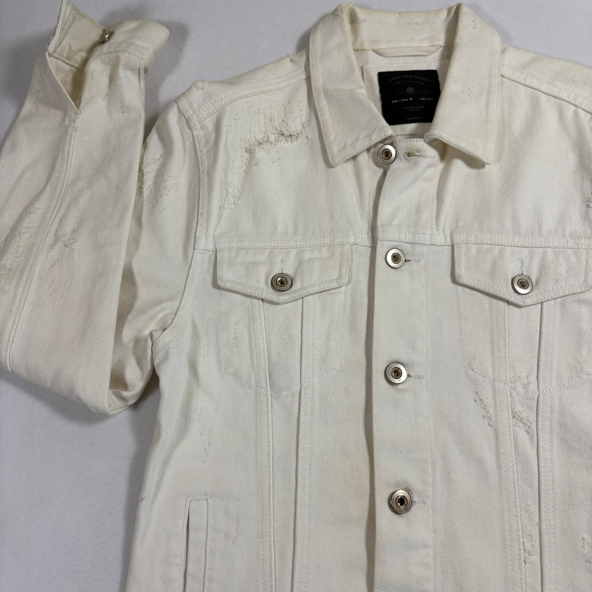Zara Man mens denim jacket M White Distressed Trucker Button Up Y2K Streetwear