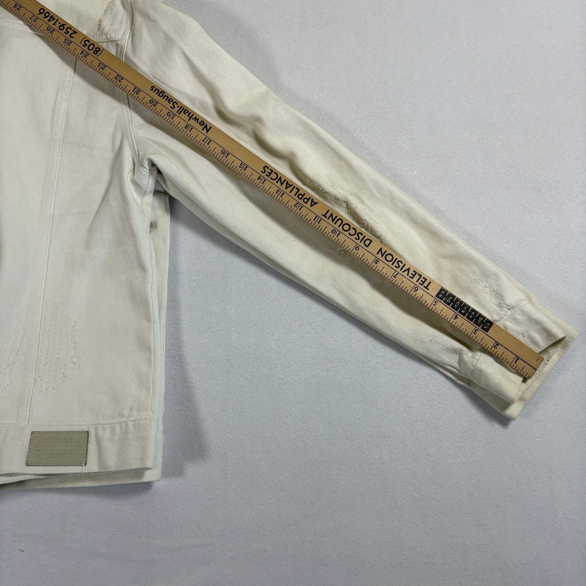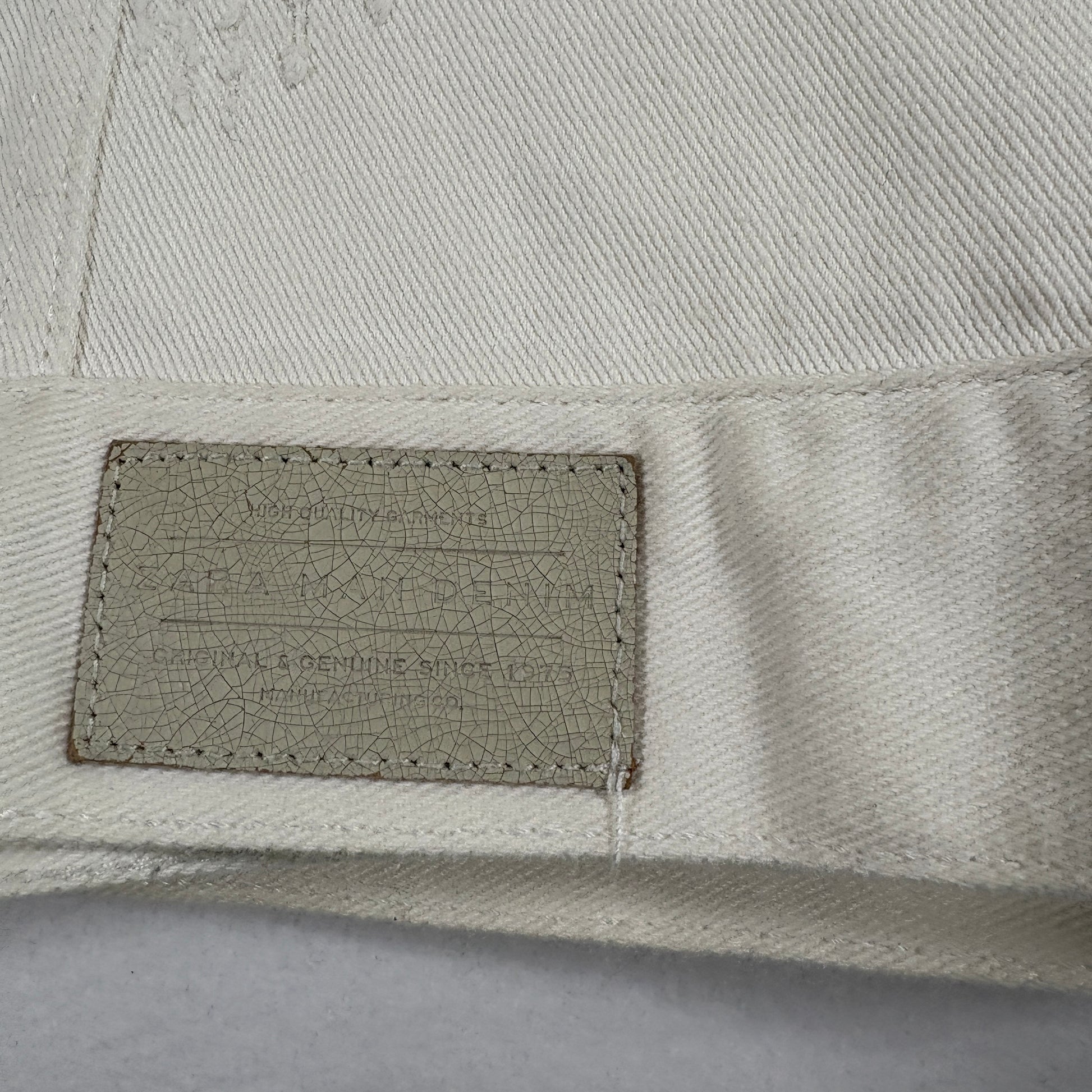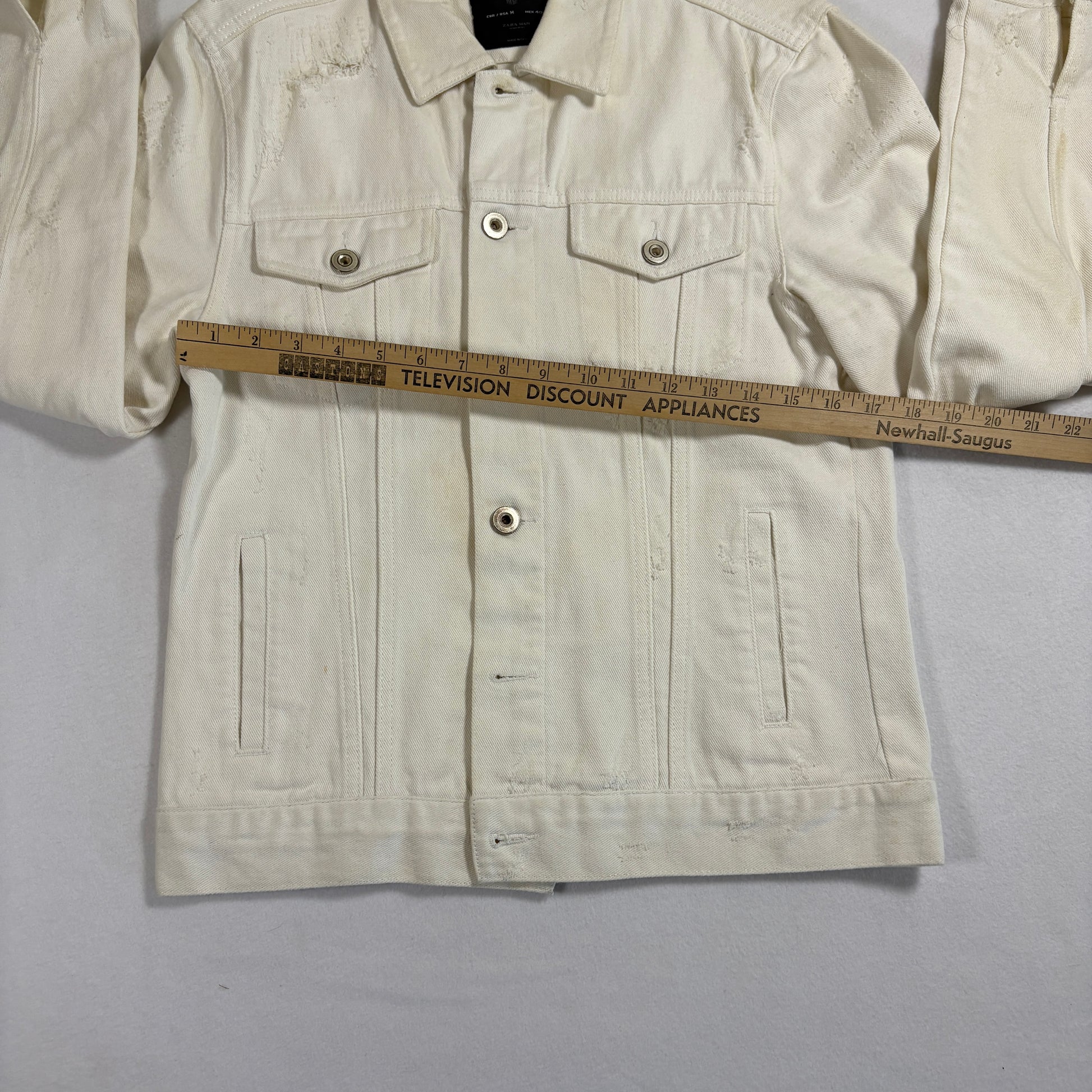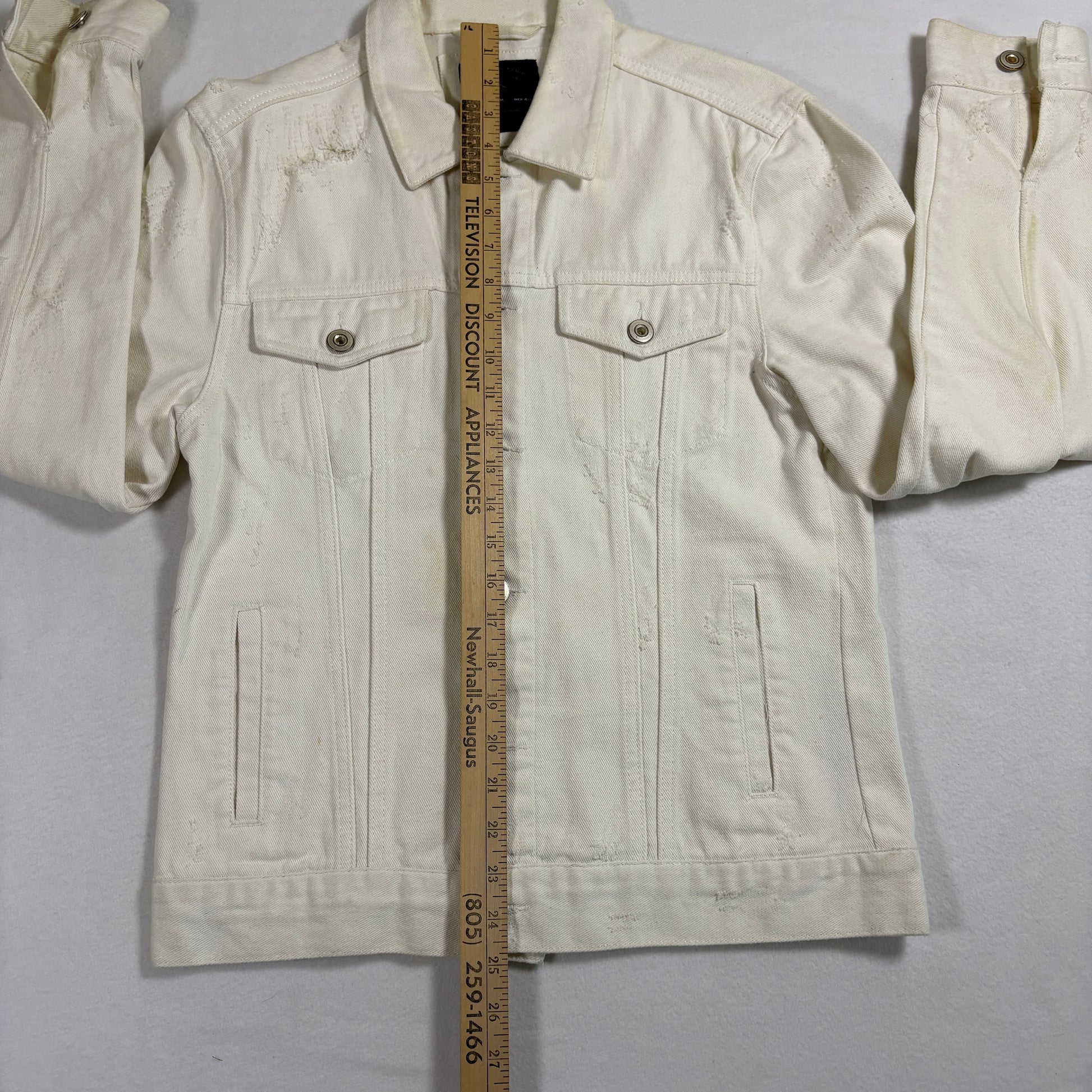 Zara Man mens denim jacket M White Distressed Trucker Button Up Y2K Streetwear